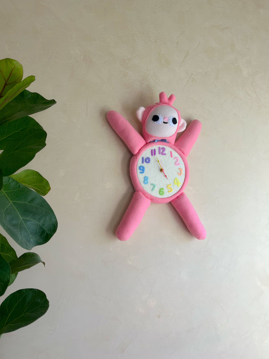 Pink Monkey! Plushie Friend Functional Analog Clock with New Metal Hands
