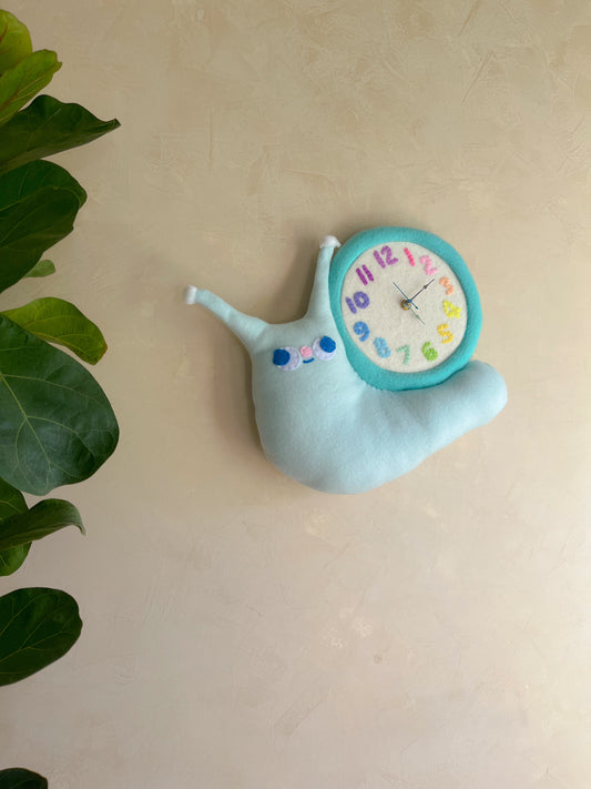 Blue Skies Snail! Plushie Friend Functional Analog Clock with New Metal Hands