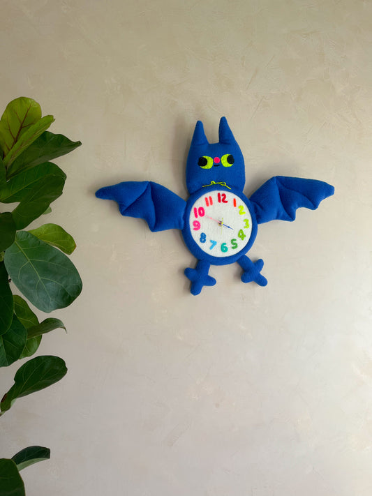 Blue Bat! Plushie Friend Functional Analog Clock with New Metal Hands