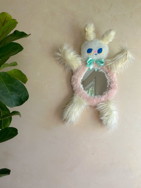 White Fuzzy Phoebe Bunny - Clunky Picnic Plush Mirror