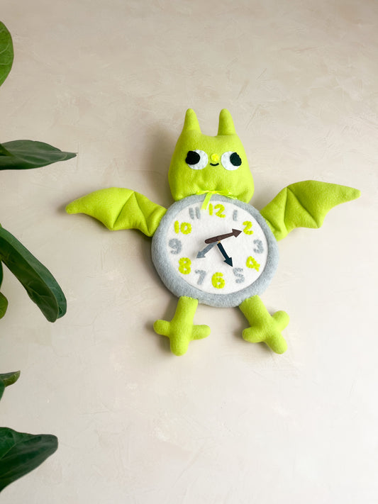 Chartreuse Bat Plushie Friend Functional Analog Clock - New Smaller Size