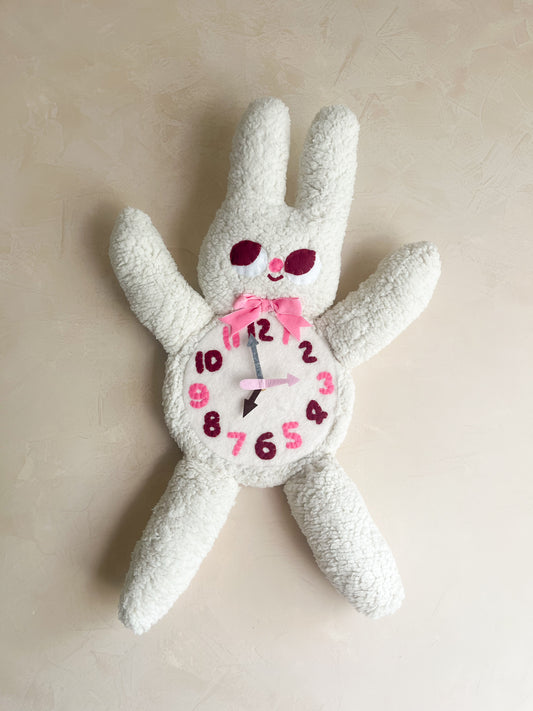 Fuzzy Bunny Plushie Friend Functional Analog Clock - New Smaller Size