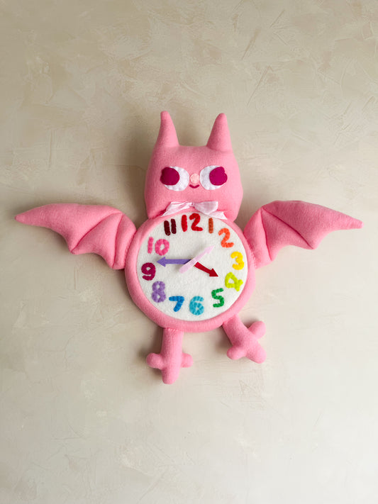 Coral Bat Plushie Friend Functional Analog Clock - New Smaller Size