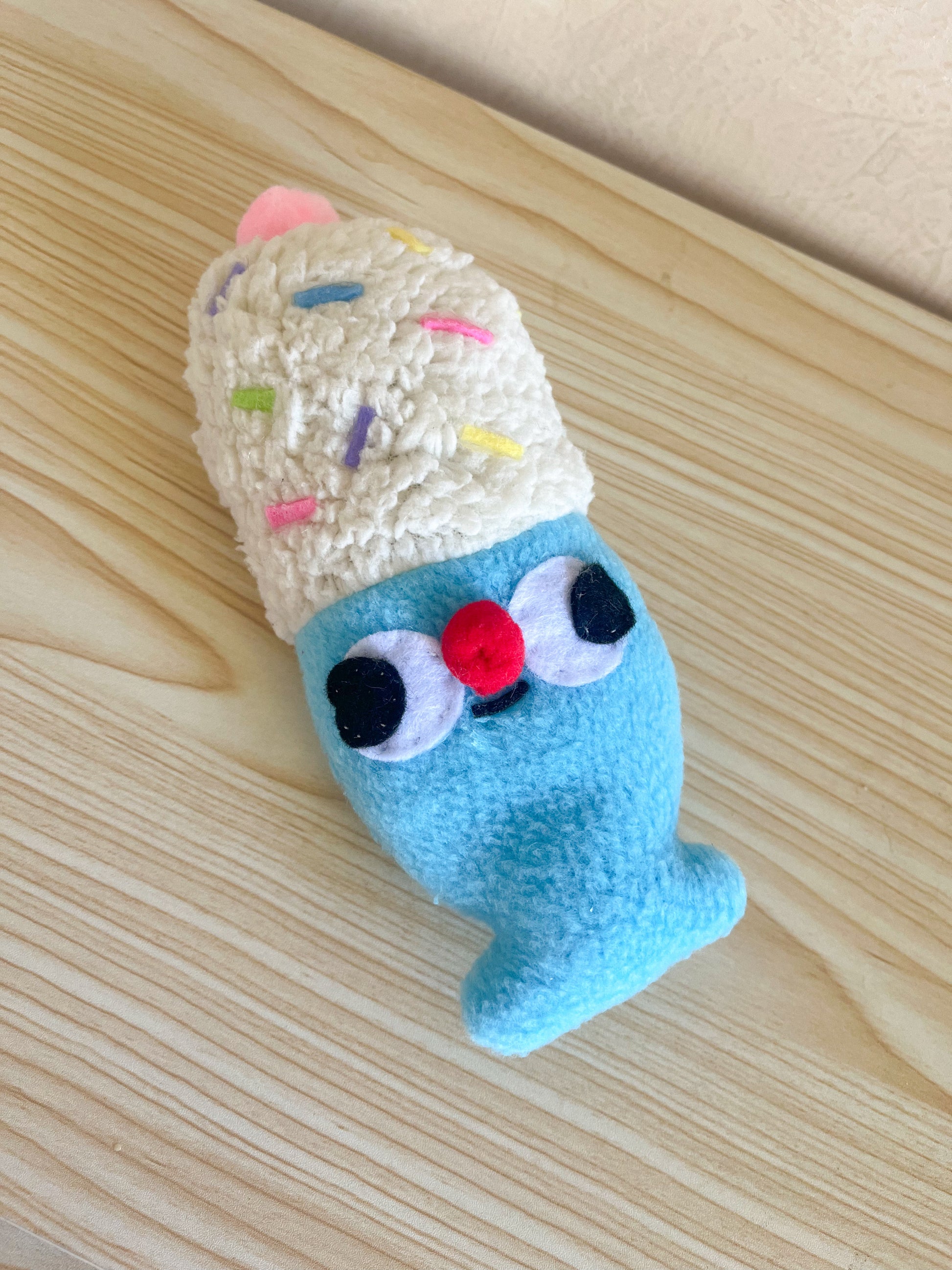 Say hello to Clunky Sundae, a lovely little plush ice cream friend, made of fleece, sherpa, and felt fabrics!